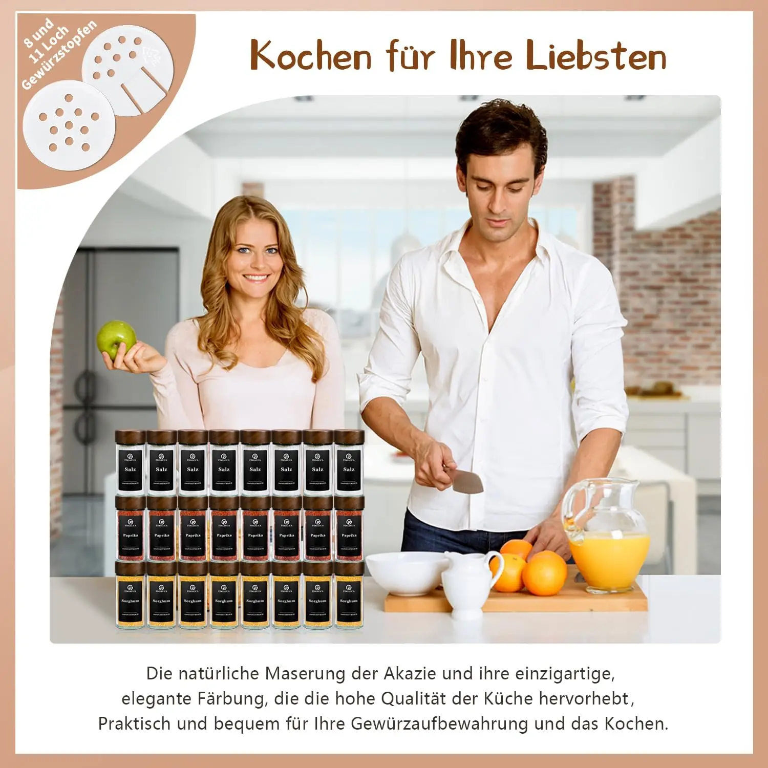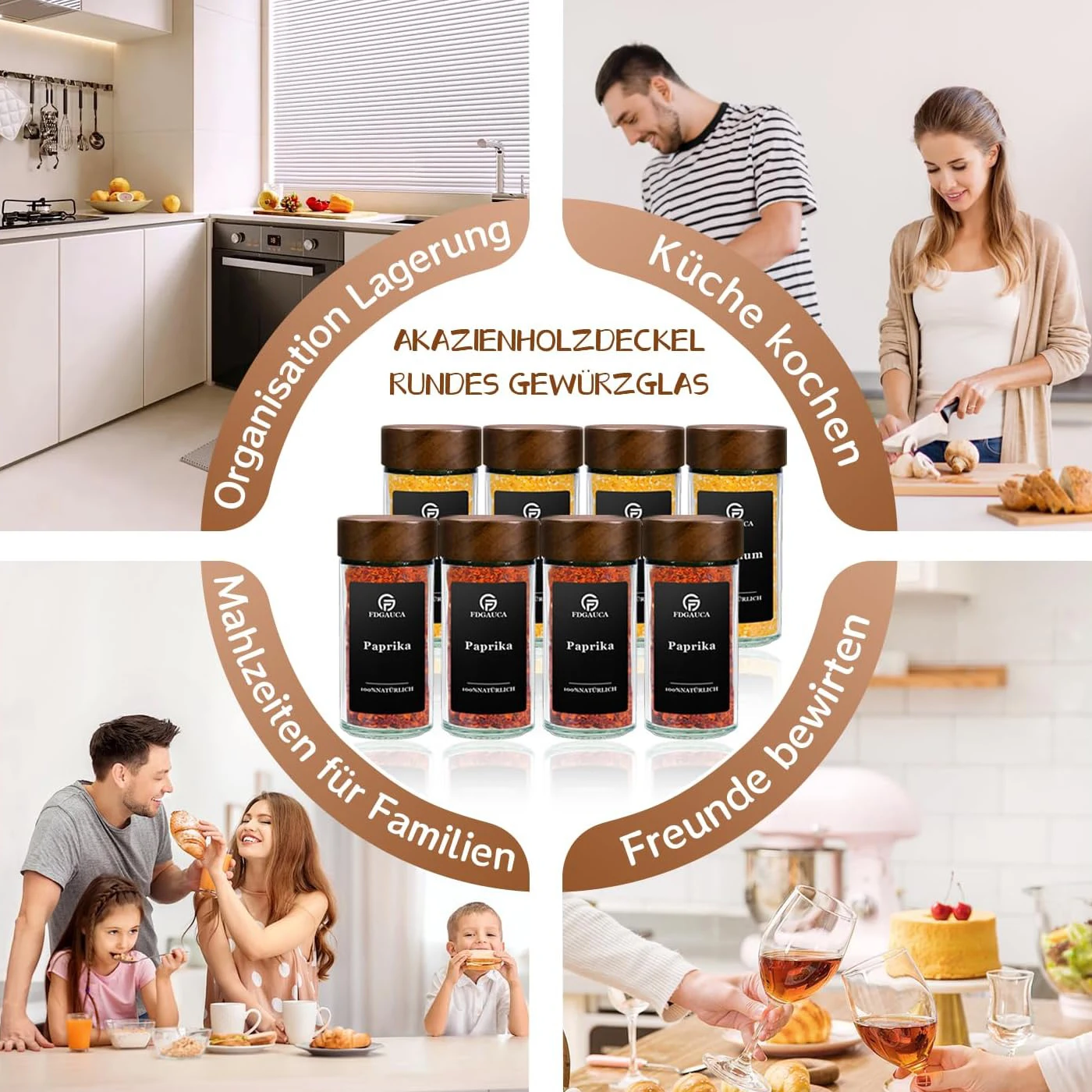 Eco-friendly lid: The natural grain and unique elegant tones of the wood highlight the high quality of your kitchen. Order a set of spice bottles to add practicality and beauty to your cabinets or spice rack. Convenient for storing spices and cooking.